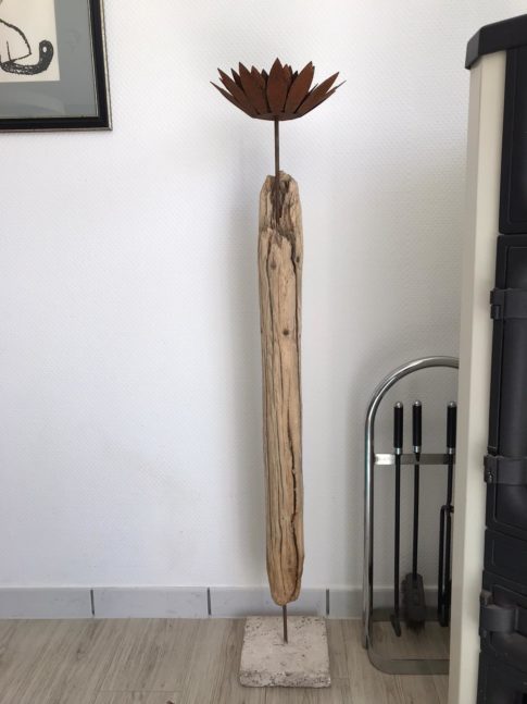 die ersten Treibholzstücke fand ich an der französischen Atlantikküste in Montalivet. Als ich die ersten, vom Meer ausgewaschenen Stücke sah, war die Idee geboren, diese in Skulpturen zum Leben zu erwecken. Kein Stück Treibholz war mehr vor mir sicher und es entstanden die ersten Hingucker.